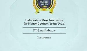Jakarta, 11 Oktober 2025 — PT Jasa Raharja meraih penghargaan Indonesia’s Most Innovative In-House Counsel Team 2025 untuk sektor asuransi, dalam ajang Indonesian In-House Counsel Summit & Awards (IHCA) 2025 yang diselenggarakan