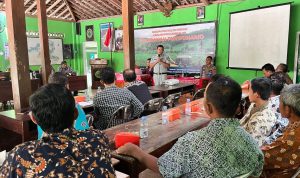 Narasumber dari Polres Gunungkidul menyampaikan materi tentang etika berkendara, termasuk kewajiban menggunakan helm SNI, sabuk pengaman, dan menghindari berkendara di bawah pengaruh alkohol atau kelelahan.